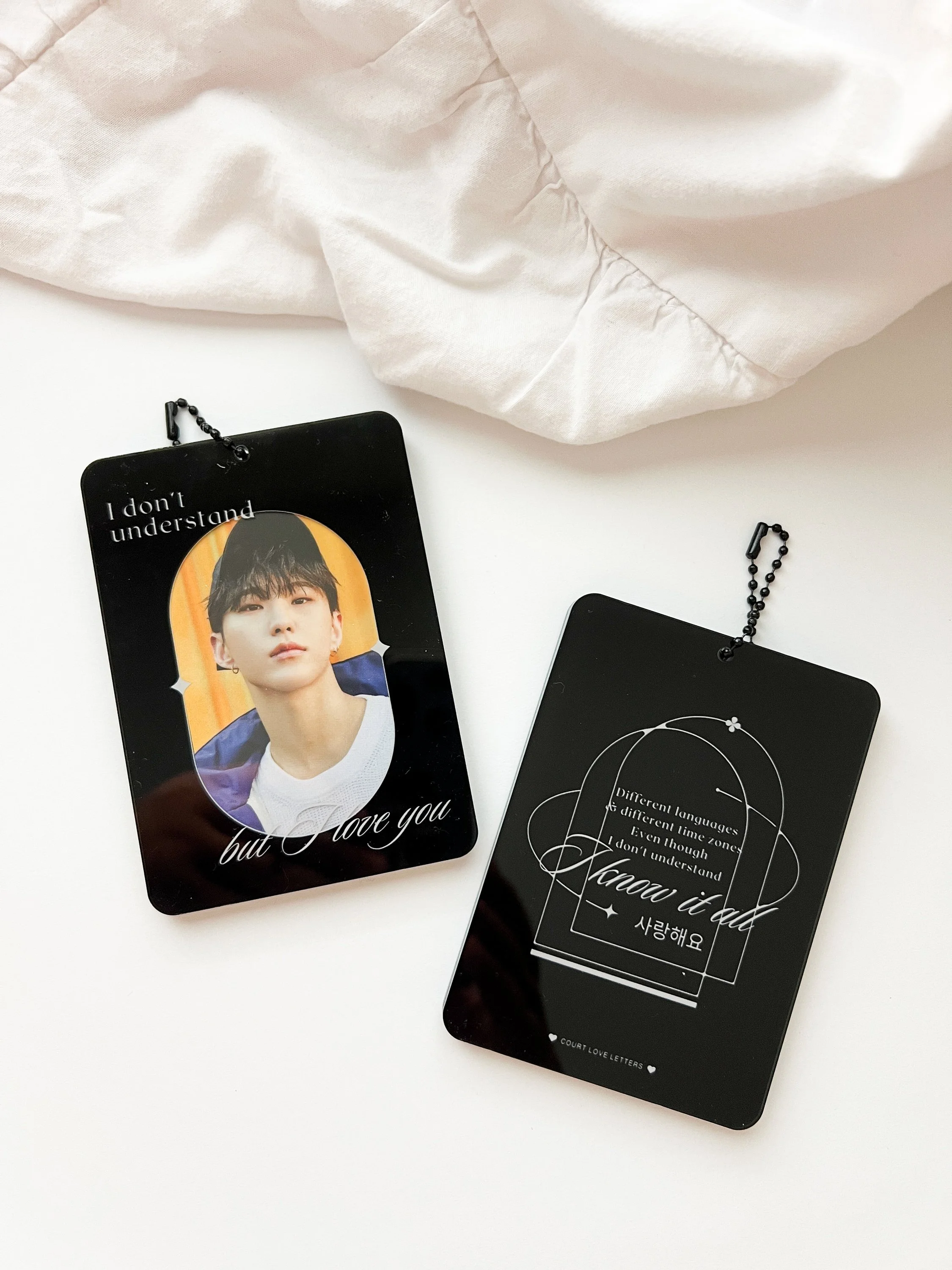 💜 I Don't Understand But I Love You: the iconic song with the lyrics that all Carats love. Though this classic glossy acrylic holder has the lyrics from IDUBILY, this holder will work for any of your loves!